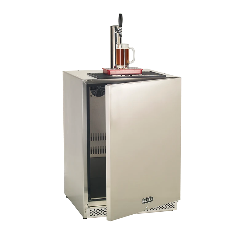 An outdoor kitchen for beer lovers is simply not complete without a draft beer system. With the Outdoor Rated Kegerator you can take your pouring power to the great outdoors. Constructed of high quality 304 stainless steel, the BULL Kegerator can withstand everything Mother Nature throws at it.