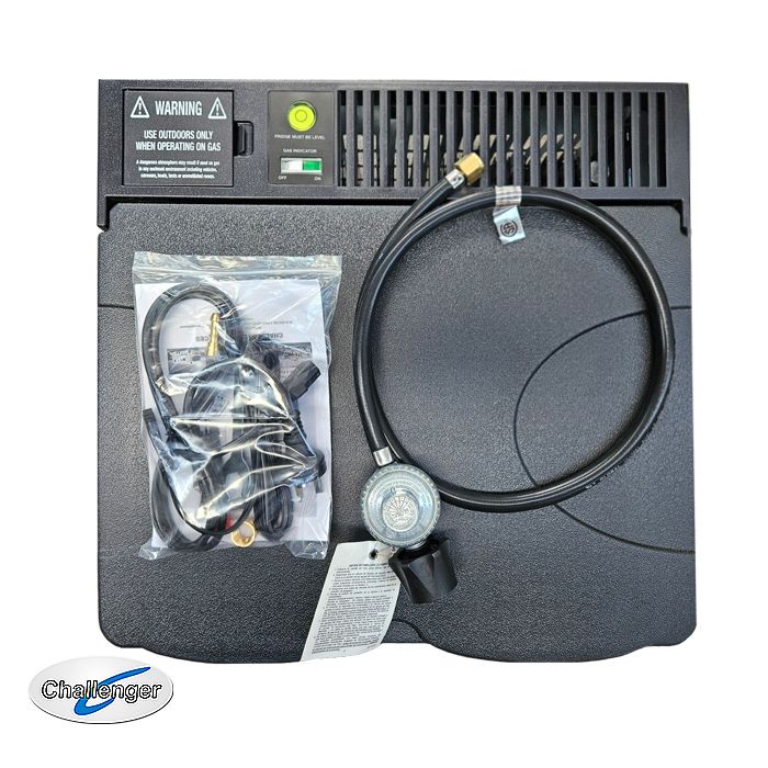 Each fridge comes ready to use with all key accessories included: gas regulator and hose kit with adapter, DC cable, and AC power cable.