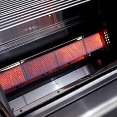 - Flush mounted/In-built BBQ with 2 x high intensity angled infrared burners. Each burner is 13MJ, fully controllable, individually with electronic ignition. Performance range from 150°C to 350°C+
