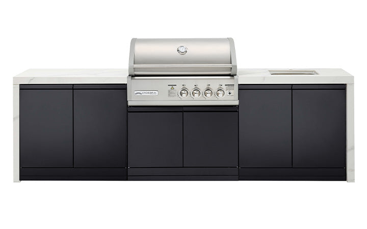 The NEW Premium 4B Outdoor Kitchens feature a white sintered stone benchtop with waterfalls. Designed to perfectly match the award-winning 4 burner CROSSRAY in-built infrared gas BBQ, it is ideal if you love cooking and entertaining outdoors, in style. With a wide variety of options and inclusions to choose from, you can buy an outdoor kitchen that is perfect for you and your outdoor area.