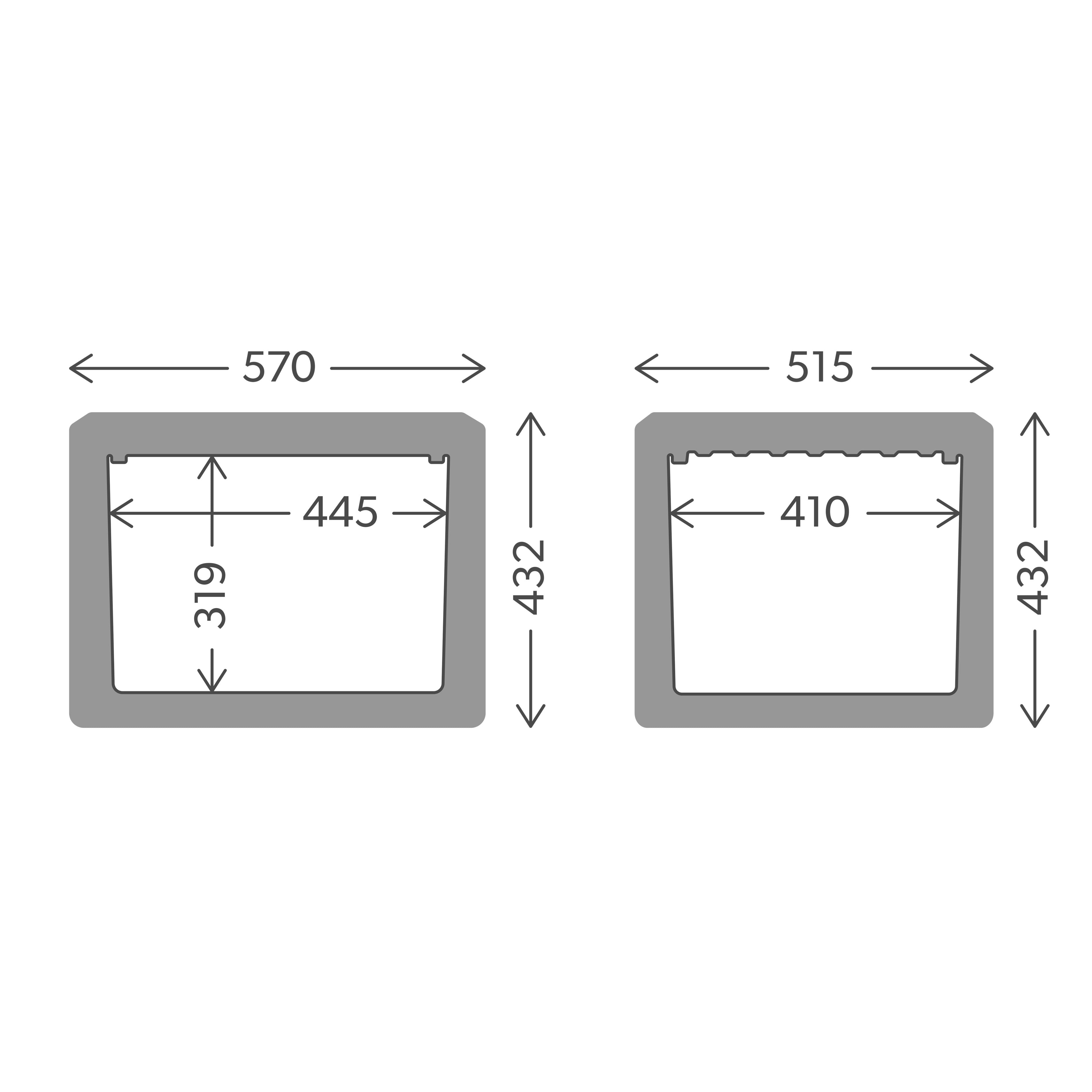 • Integrated hinges with stainless steel rods and durable rubber latches