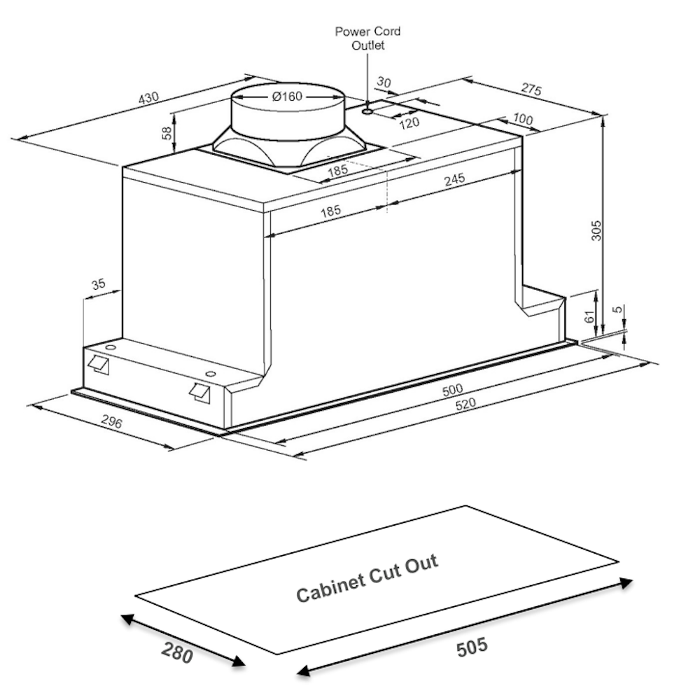 This undermount rangehood features a premium black tempered glass that conceals the filter and provides a seamless integrated look in your kitchen design and the 1000m³/h of air movement will ensure cooking vapours are effectively removed from the kitchen.