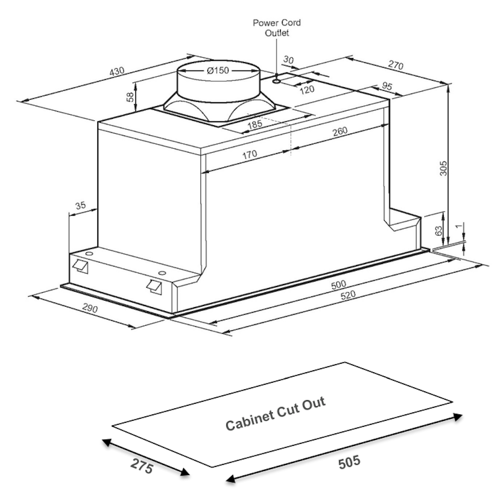 This low profile undermount rangehood is a very style conscious decision for any modern kitchen. Featuring up to 1000 m³/h for airflow, baffle filters and LED lighting, the UCB52S is well suited above any high powered gas or induction cooktop.
