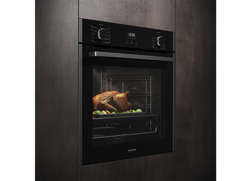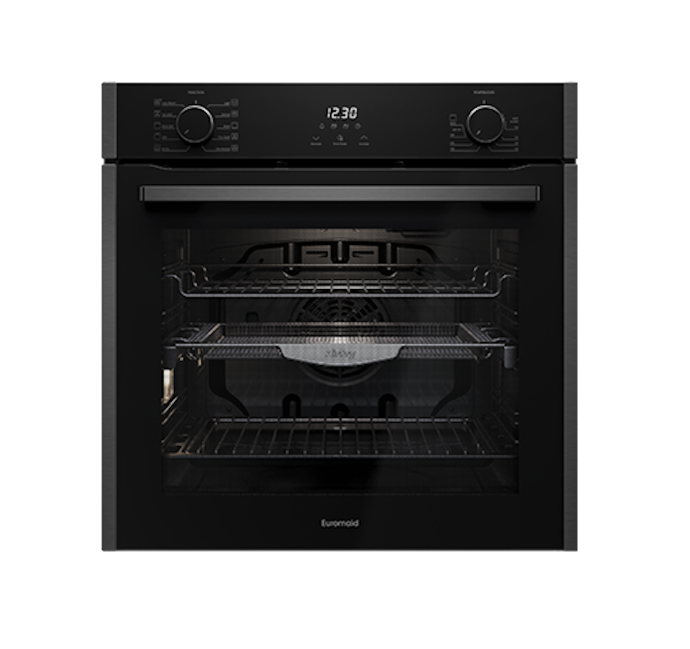 Perfect crispy, crunchy results at your fingertips. The 60cm 10 Function Euromaid Built-in Oven with Air Fry gives you unbeatable cooking results with healthy, delicious meals for the whole family. Combined with a market leading 92L oven capacity and 10 functions this oven is the ultimate home cook companion. Available only at selected Harvey Norman, Domayne and Joyce Mayne stores.
