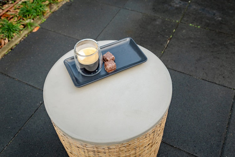 This stylish, bamboo and lime concrete coffee table complements any outdoor alfresco area.