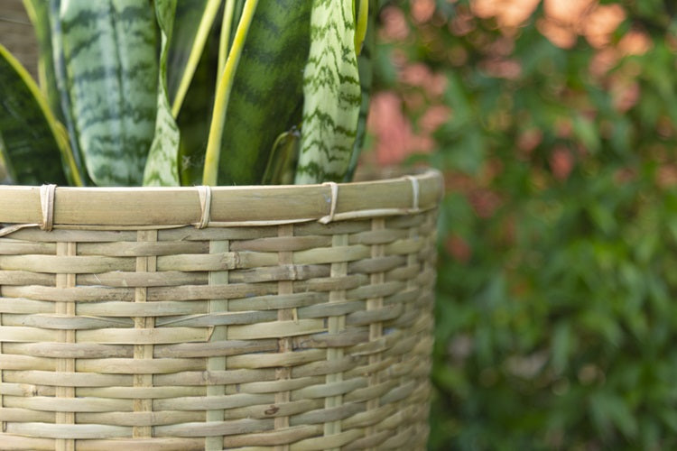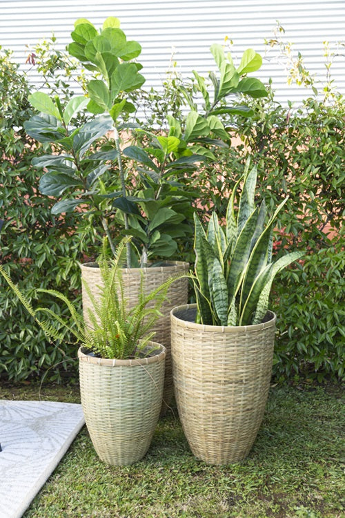 - 3 x tall vertical round bamboo pots in natural colour