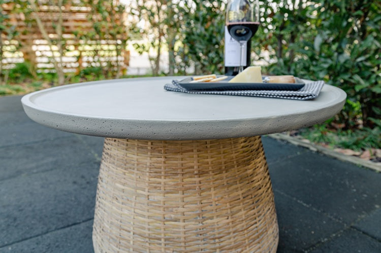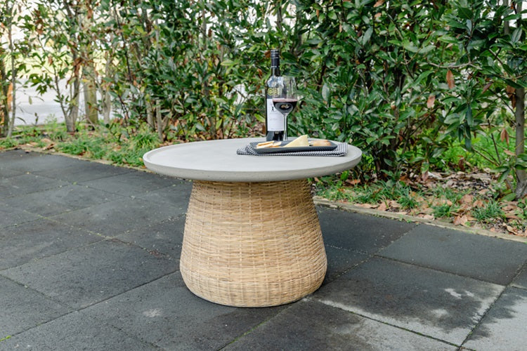 This stylish bamboo and lime concrete coffee table complement any outdoor alfresco area.