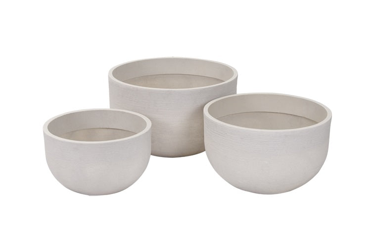 Crafted out of polyresin, fibreglass and stone powder to create a stylish lightweight durable pot collection. The Livorno white sand fibre pots are ideal for both indoor and outdoor settings.