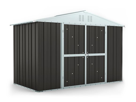 Durable and attractive, this shed is made from double pressed, high-grade, galvanised steel. It is sturdy, won’t warp or lose its shape, and it comes with a 12 year no-rust warranty. This shed features double hinged doors for easy assembly, better reliability, and extra light. The doors have a handy lockable latch for security.