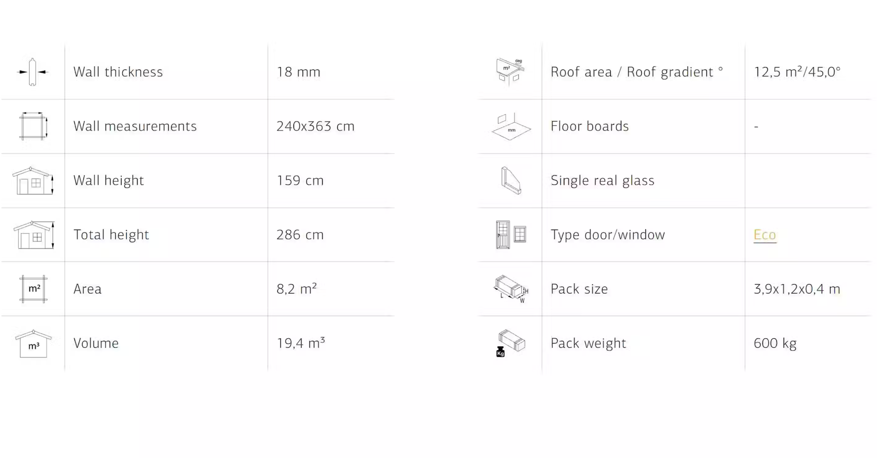 With a floor space of 8,2m², you will be able to fit an outdoor dining set or lounge set and still have space for your plants around it, creating a beautiful green oasis.