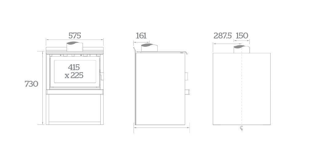 Due to the high efficiency of Kent wood fires, ash removal should only be necessary every few weeks. Ashes can be scooped up and removed easily through the door opening.