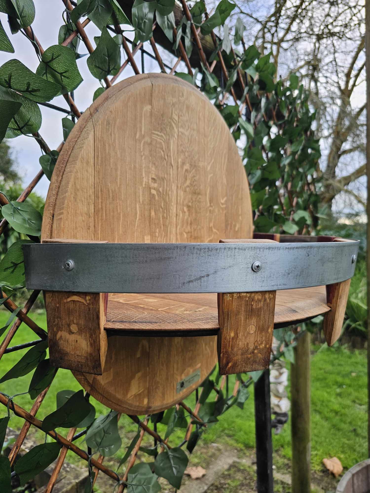 Check out our unique barrel shelf! Perfect addition for your bar/shed.