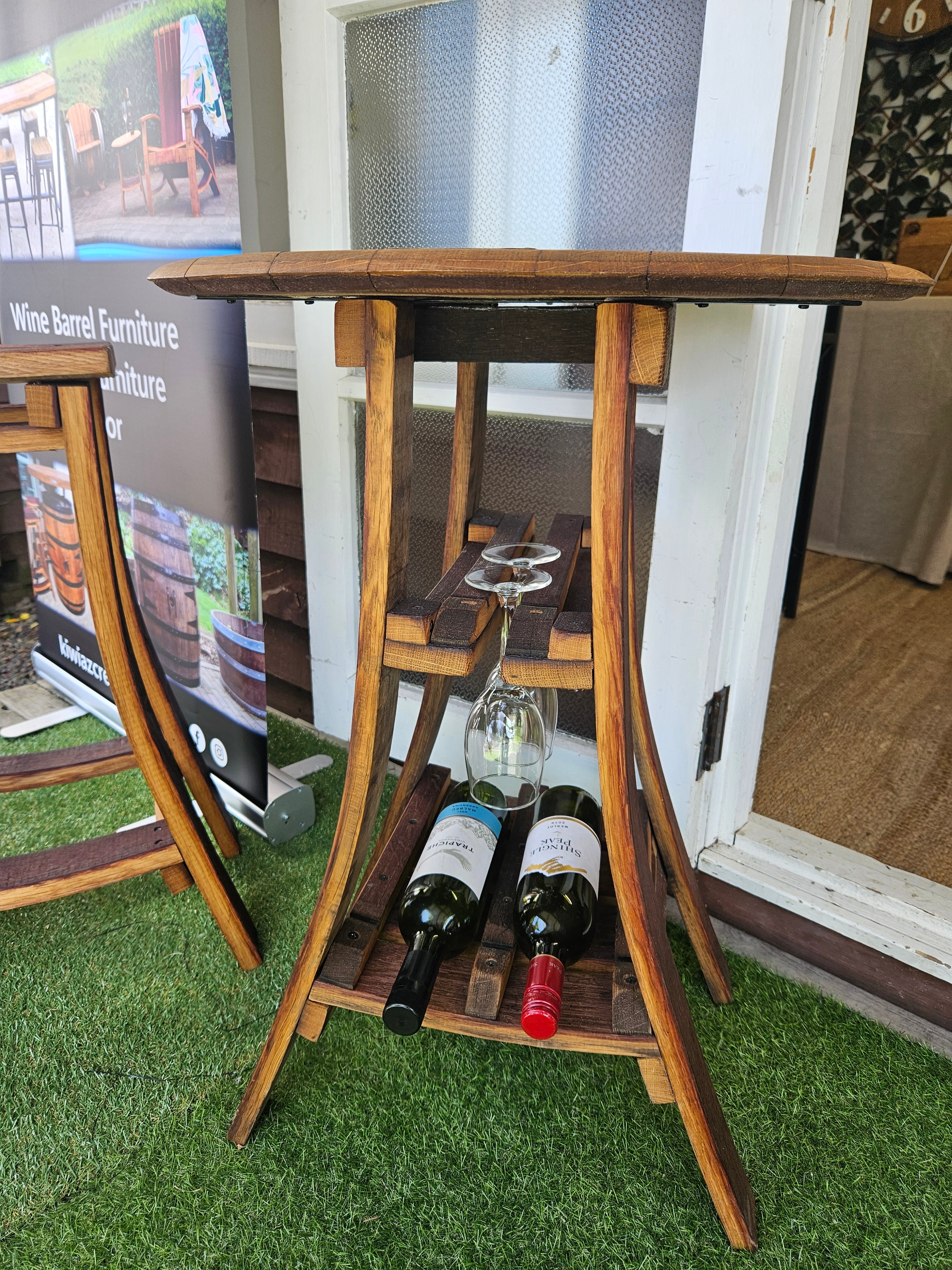 It is made from the French oak wine barrel staves and the barrel top without the metal ring.