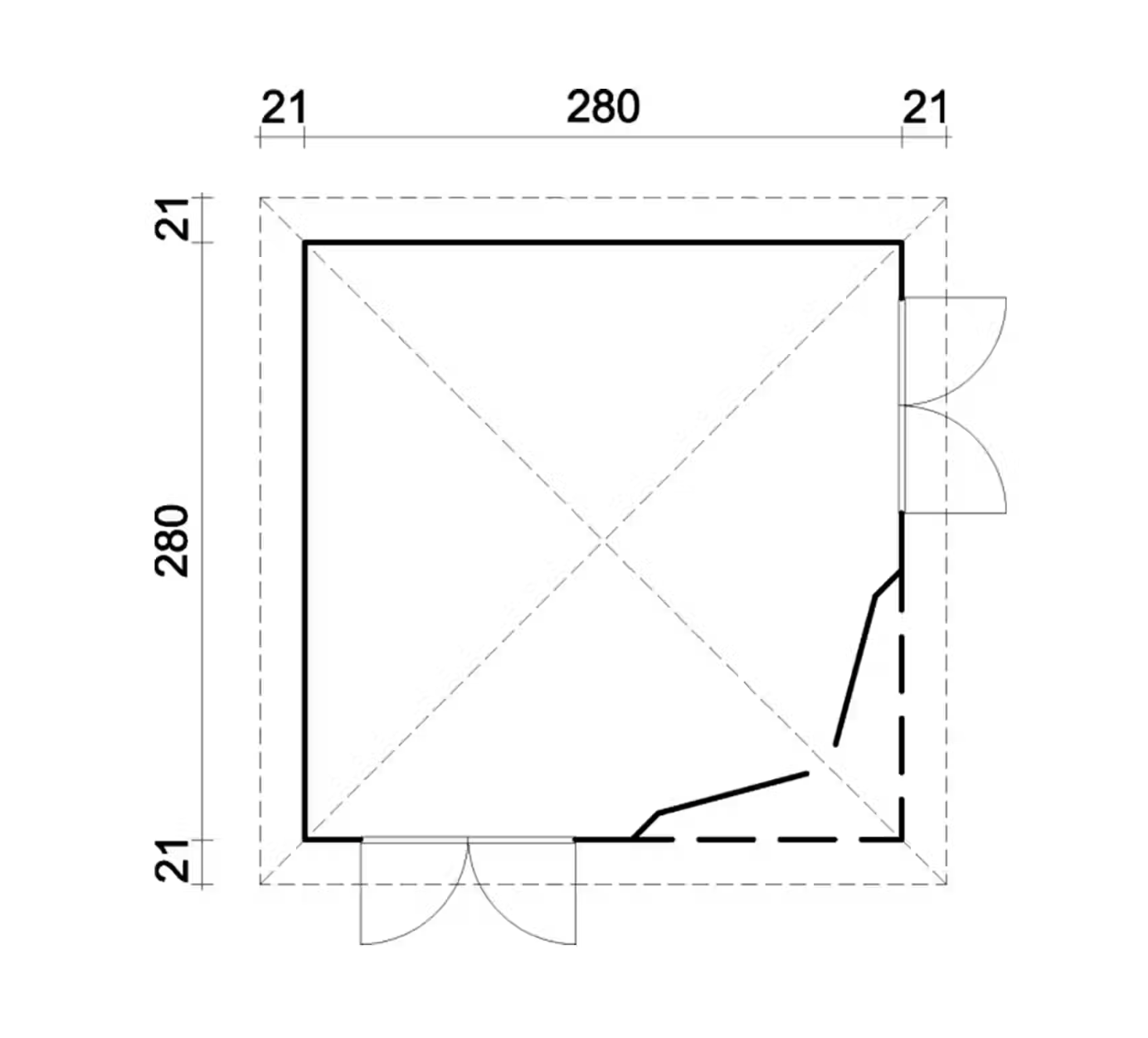 Dimensions: W 2.8m x D 2.8m x H 2.97m