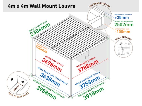 • Wall-mounted 4m x 4m louvre roof system