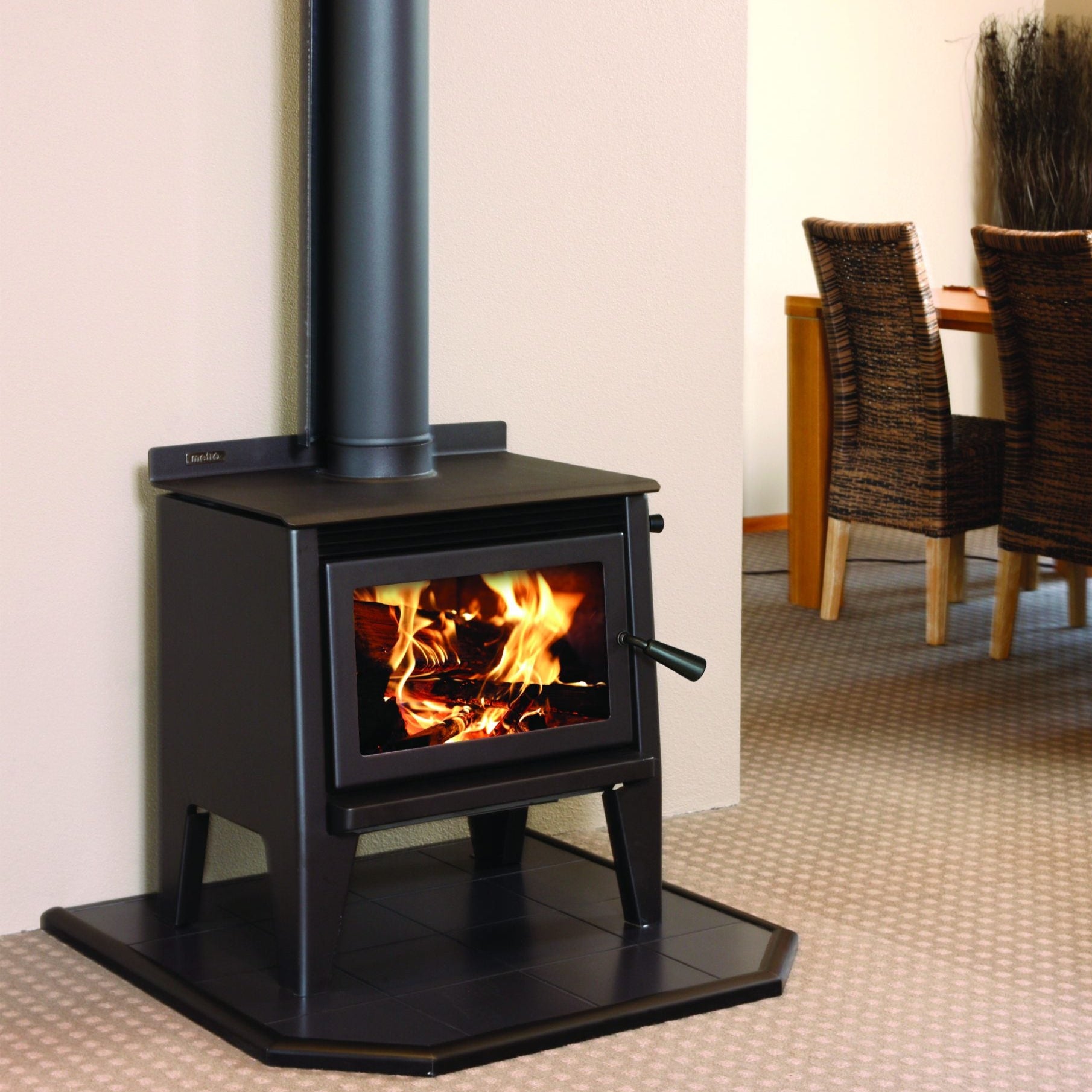 The Metro LTD Wee Rad Leg delivers reliable home heating, water heating, and cooking all in one stylish and functional wood fire – perfect for rural Kiwi living.
