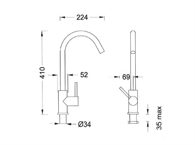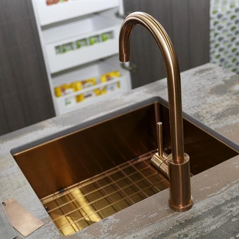 The Mercer Aurora Gooseneck Sink Mixer is custom made to suit our range of Aurora sinks and accessories.