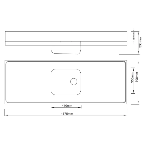 The bench has anti spill edge on all three sides, a 150mm rear upstand and a 40mm fascia.