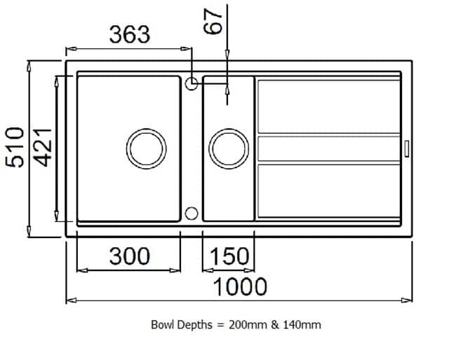 The Mercer Duro Granite Series is made from 80% granite. A modern, easy care sink with clean straight lines and a 10mm corner radius, it comes standard with a 90mm basket waste which includes a stylish flip cover.