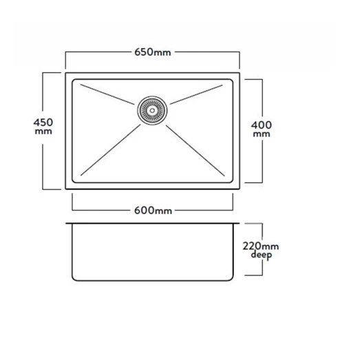 The DV Chester single bowl sink has a 15mm corner radius and comes standard with a 90mm round basket waste, sound deadening and 15l/m overflow.
