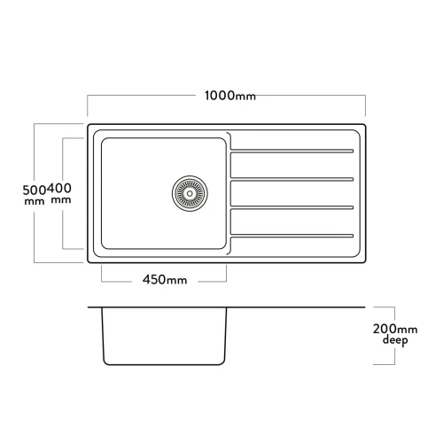 This modern 25mm radius bowl and drainer has an easy clean laser edge and comes standard with a 90mm round basket waste and a main bowl overflow.