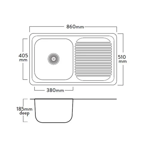 The EH102 Horizon 850 single bowl and drainer is reversible.