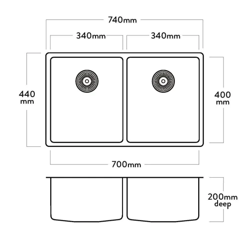 The Pressato PR300 Double Bowl has a 15mm corner radius and comes standard with two 90mm round basket wastes, sound deadening pads and 15l/m overflows.