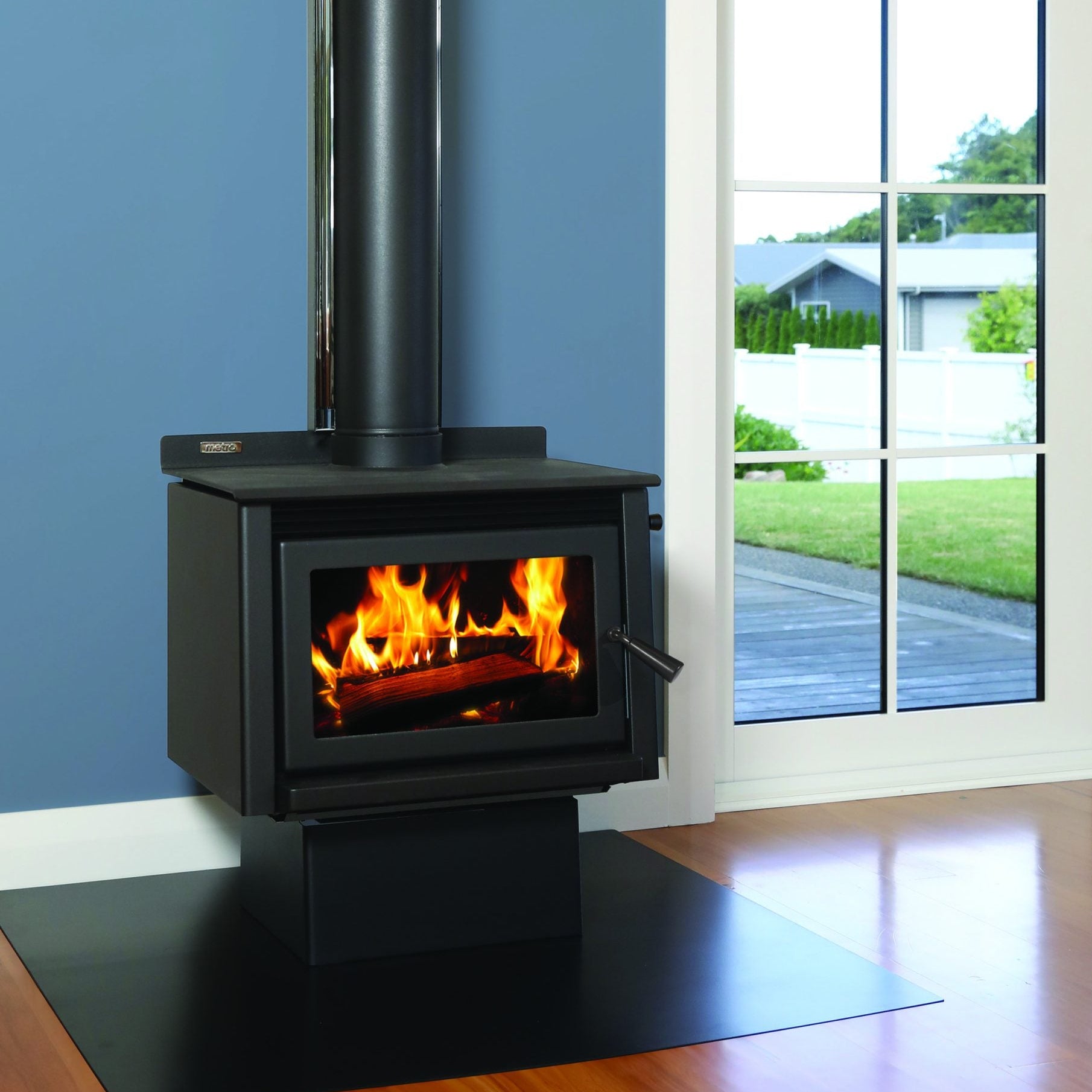 With its modern pedestal base, this model offers clean lines and contemporary style, while the large glass door gives you a generous flame view to enjoy those cosy winter nights.