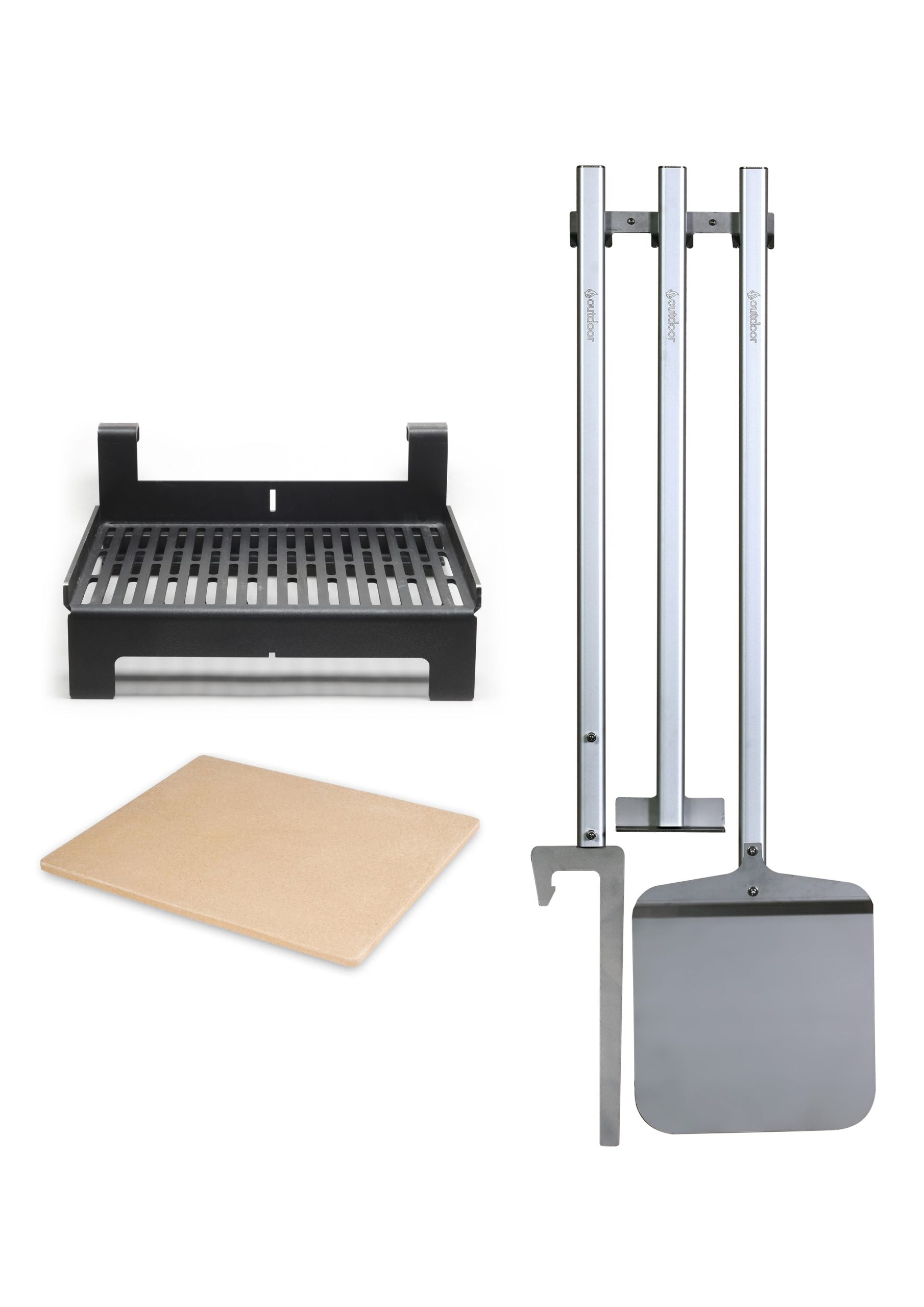 This package also transforms into a versatile outdoor cooking station. With a removable grill and pizza stone included, you can serve up wood-fired pizzas, roasts, or flame-grilled favourites – then relax by the fire as it keeps your guests warm long into the night.