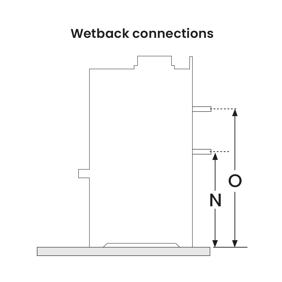 Finished in durable metallic black paint with an upright vertical design, this fire brings a sleek, refined look to any modern home. The base compartment offers convenient storage with a push-button door for easy access. An optional side wetback can also be added for hot water heating.
