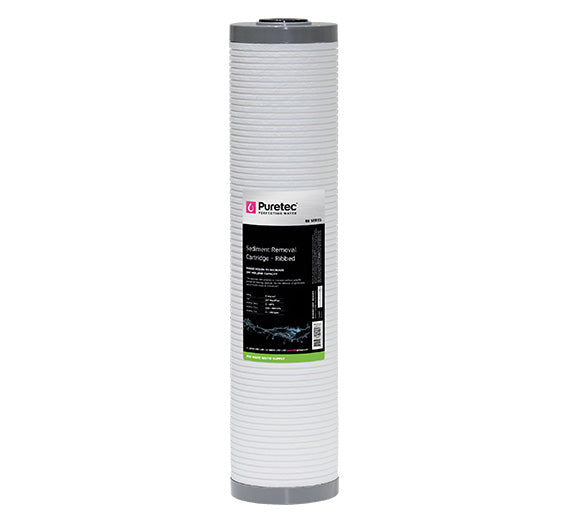 Puretec RB25MP2 and RB25MP1 cartridge uses grooves to increase surface area for greater dirt-holding capacity. These cartridges reduces dirt, rust, algae and organic matter.