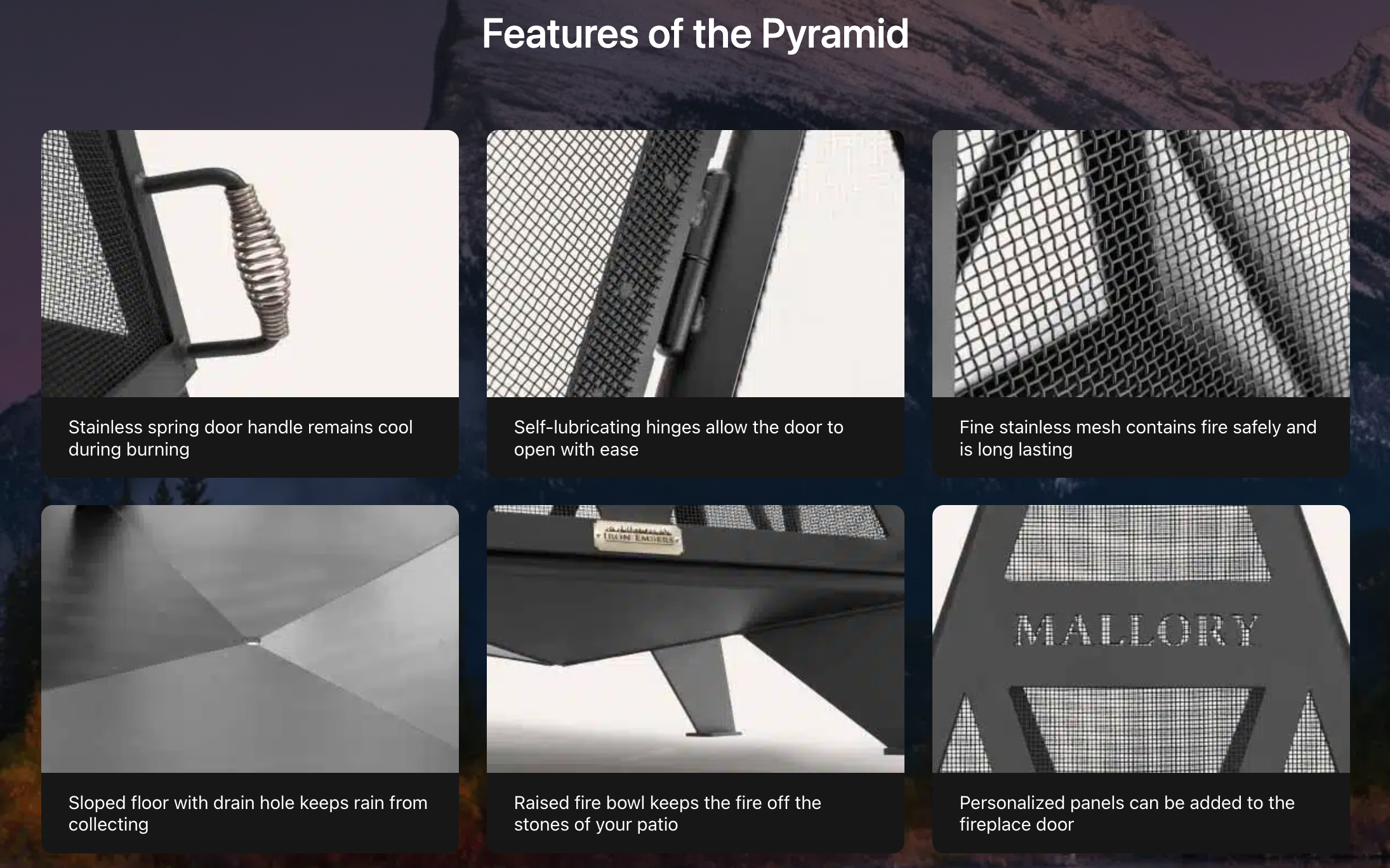 The Iron Embers 4’ Pyramid Outdoor Fireplace is as much a piece of art as it is a fire pit. Its striking geometric design makes it one of Iron Embers’ most popular models, blending style, safety, and durability for the ultimate outdoor fireside experience.