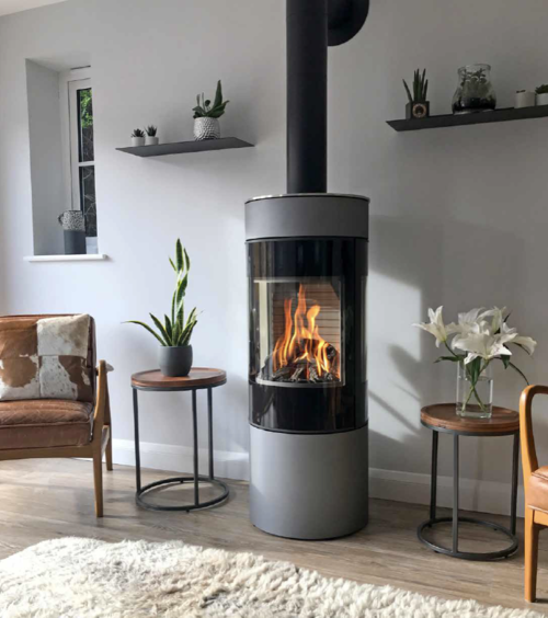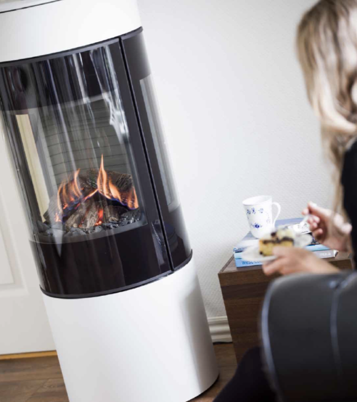 The Viva Gas Fire by Rais, Denmark, is a free-standing gas fireplace that features a modern yet timeless aesthetic thanks to precision Scandinavian design and manufacturing.