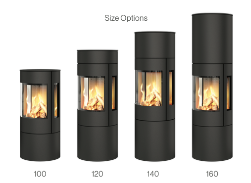 - Option of thermal mass for the 120, 140 and 160 models with heat release of 2-3 hours (25 kg for the 120) 4-6 hours (48 kg for the 140) or 7-8 hours (100 kg for the 160).