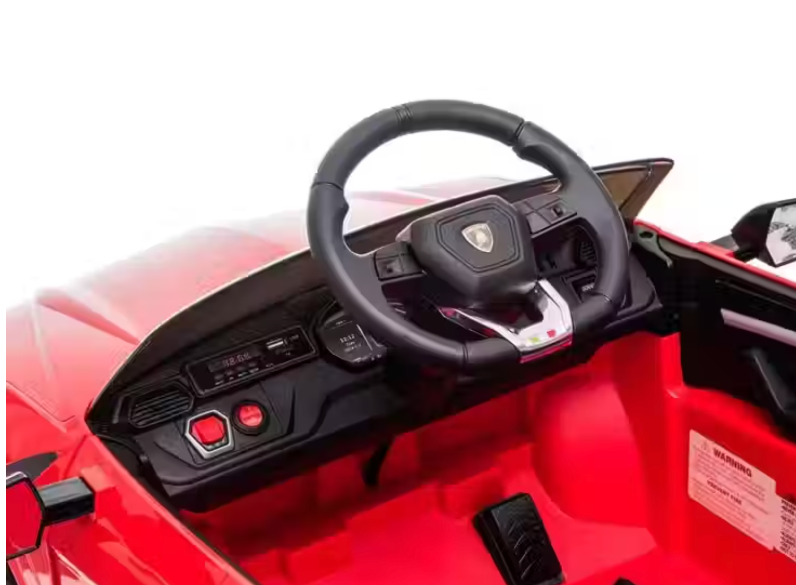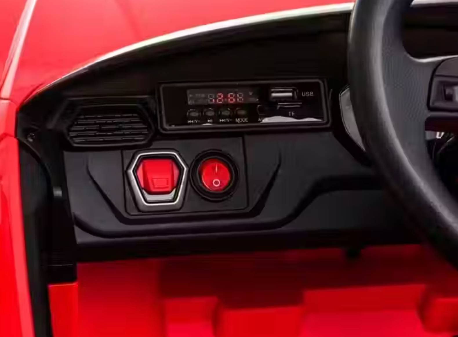 Featuring real AUX & USB inputs, plus FM radio, kids can jam out to their favourite tunes (aux/usb cord not included). Including working LED headlights, seat belt, functional doors, dash lights, and startup sounds, this Lambo is as realistic as it gets!