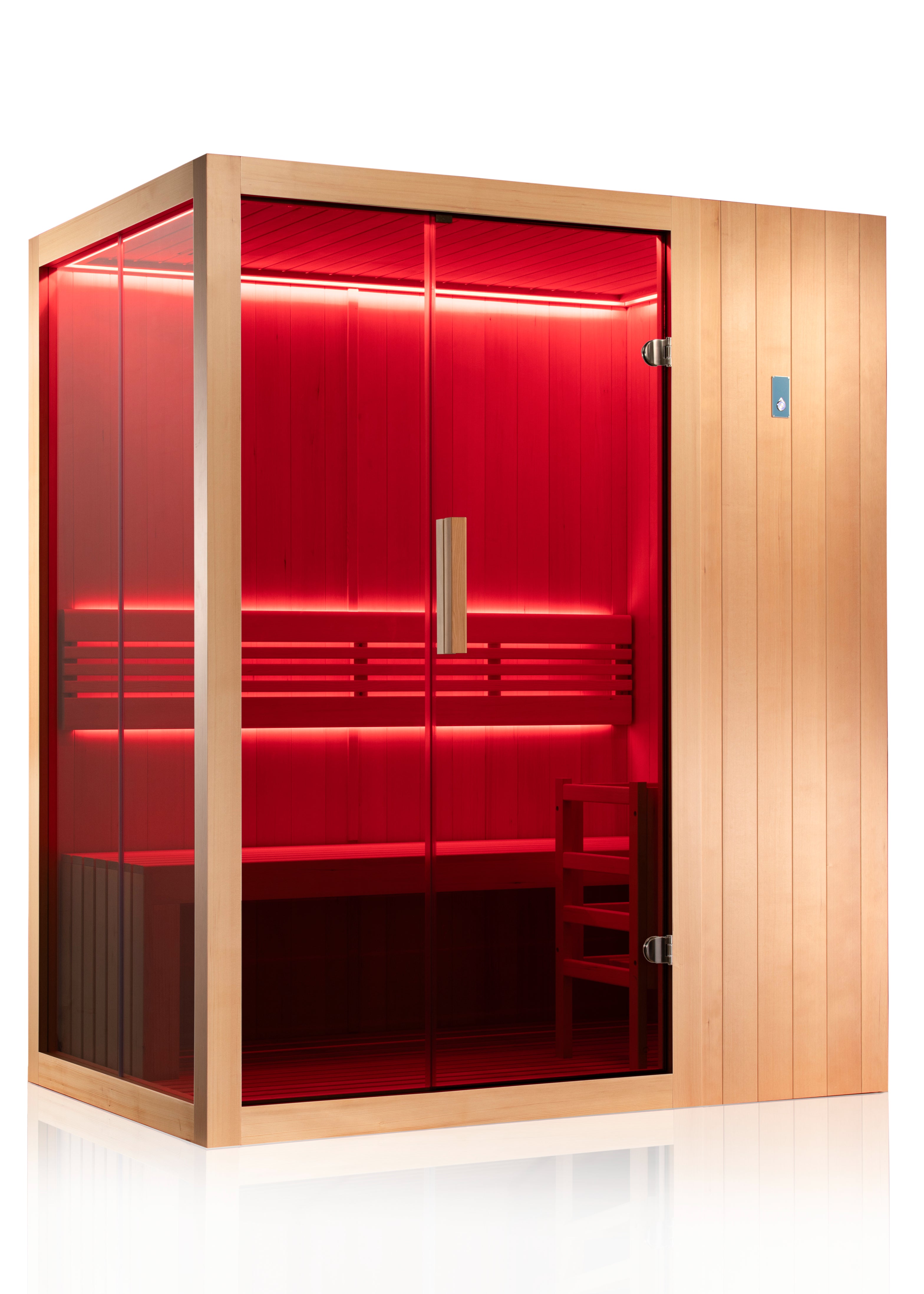 Bring luxury wellness into your home with the Sereno Indoor Sauna, designed for 2–3 people. Crafted from premium hemlock wood with clean, contemporary lines, this sauna combines style, comfort, and cutting-edge features to deliver a true spa-like experience indoors.