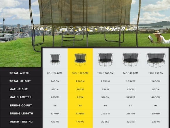 All Superfly X tramps are constructed from galvanised steel and backed by a 10 Year Frame Warranty, so they’ll stay nice and safe as the years go by. Rated as the easiest tramp on the market to assemble, the efficient design uses the fewest parts possible. Experience great quality from one of our favourite Kiwi brands.
