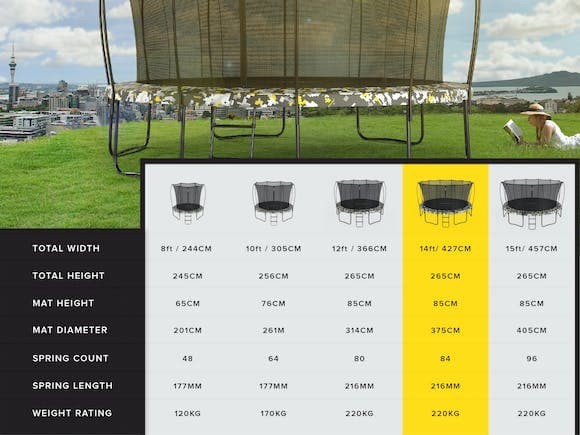 The American-made jumping mat is UV resistant and has been specifically designed to stand whatever the unpredictable year-round New Zealand weather can throw at it.
