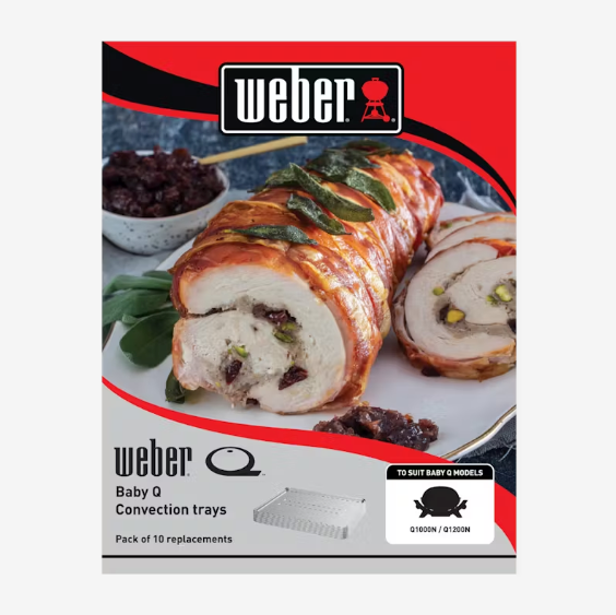 Safety tip: Please avoid reusing Weber Baby Q convection trays for roasting meat multiple times, as residual fats can pose a fire hazard. However, feel free to reuse them safely for baking, preparing pizzas, and crafting desserts. Stay safe and enjoy your BBQ experience!