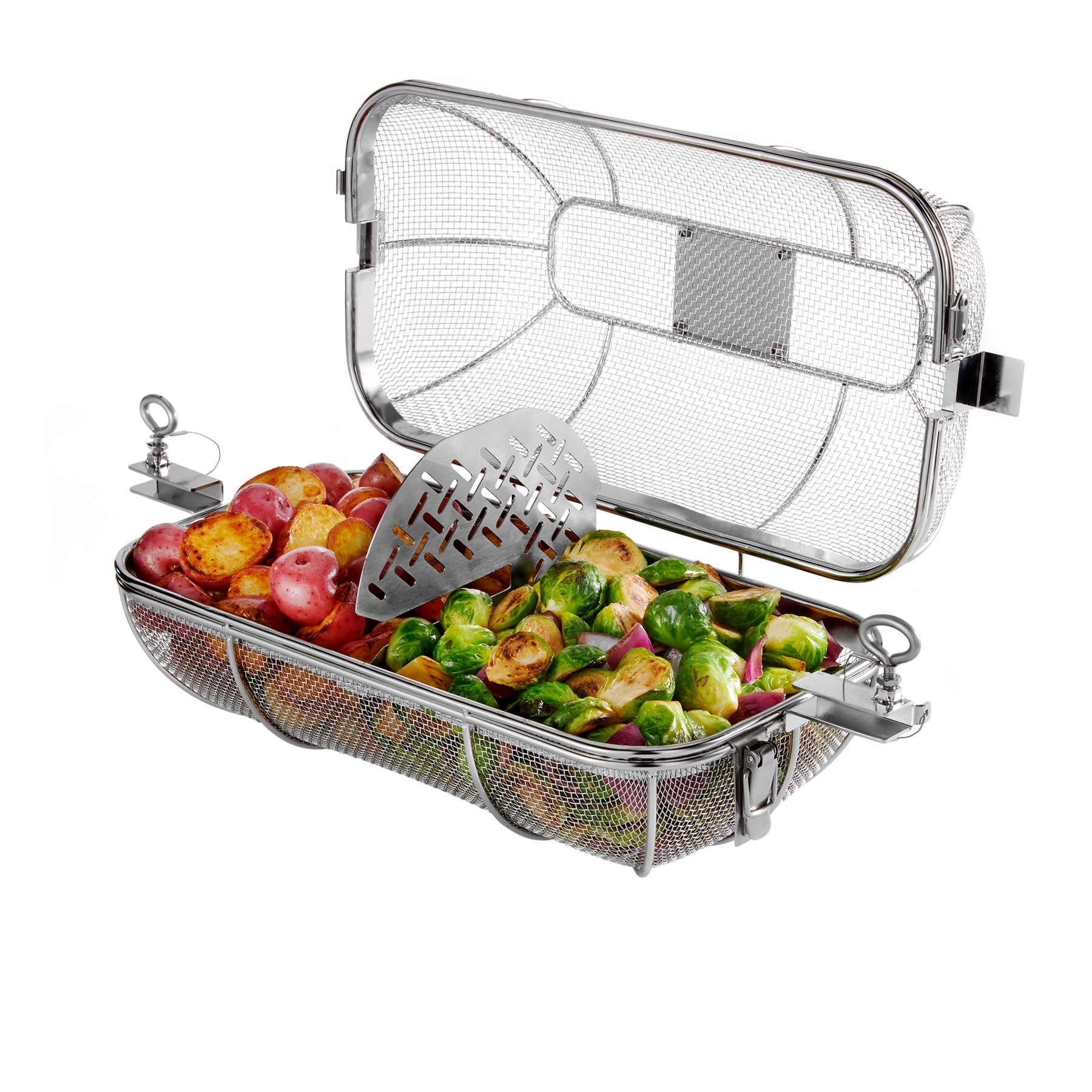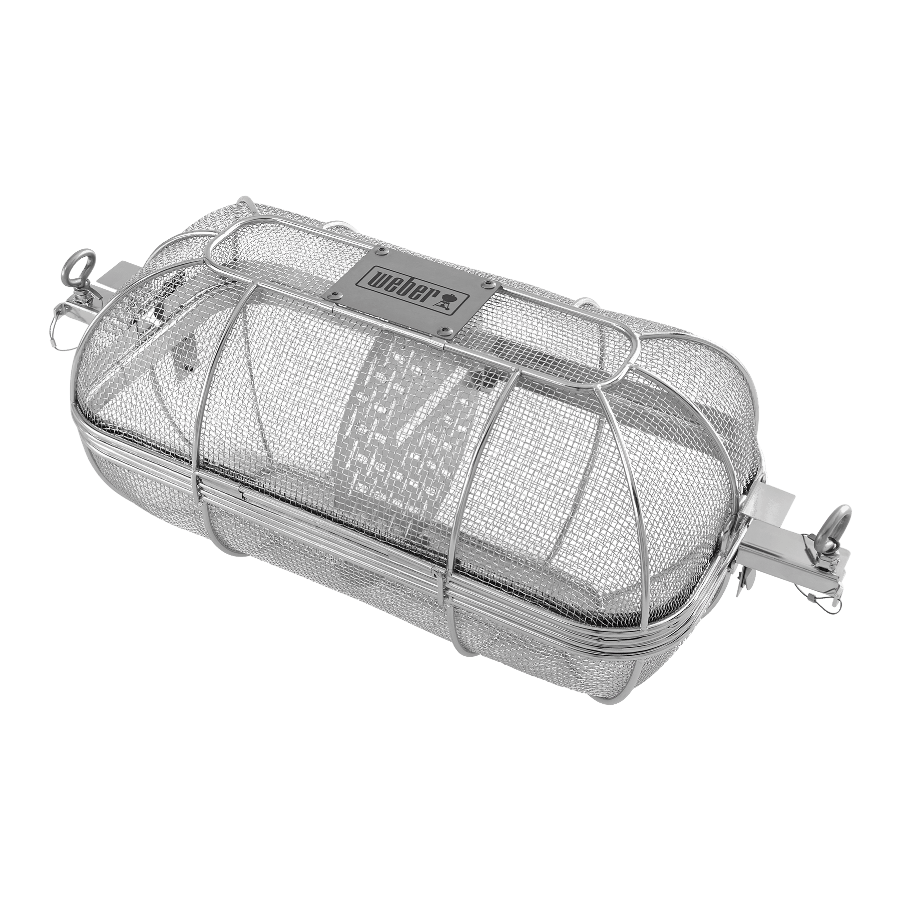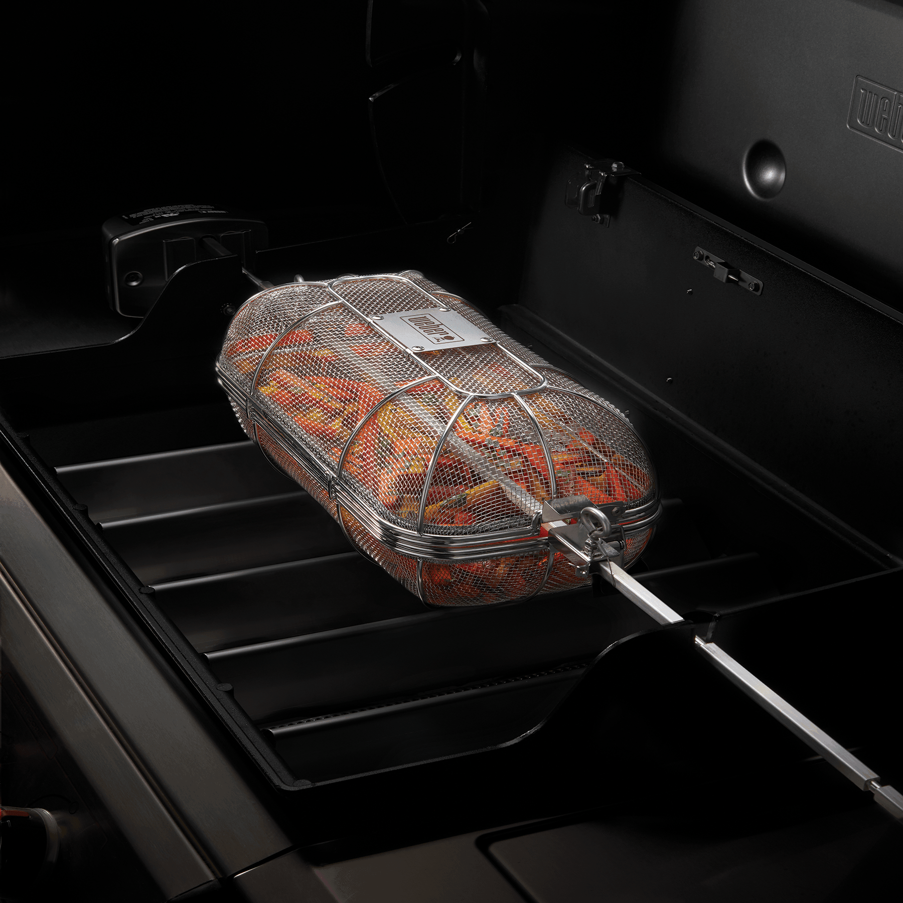 Bring your kitchen outside, and create food never thought possible in your grill, with the WEBER CRAFTED Outdoor Kitchen Collection. Simply attach the WEBER CRAFTED Rotisserie Crisping Basket onto the rotisserie spit in your grill to make deliciously crispy French fries, veggies, or even popcorn. Grill rotisserie unit required for use.