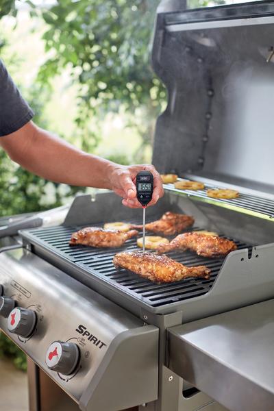 Make sure your meat is cooked just the way you like it on the BBQ with this digital instant read meat thermometer. The large digital display reads the internal meat temperature accurately in a matter of seconds. Whether you like your bbq steaks rare or well done, never leave it up to chance.