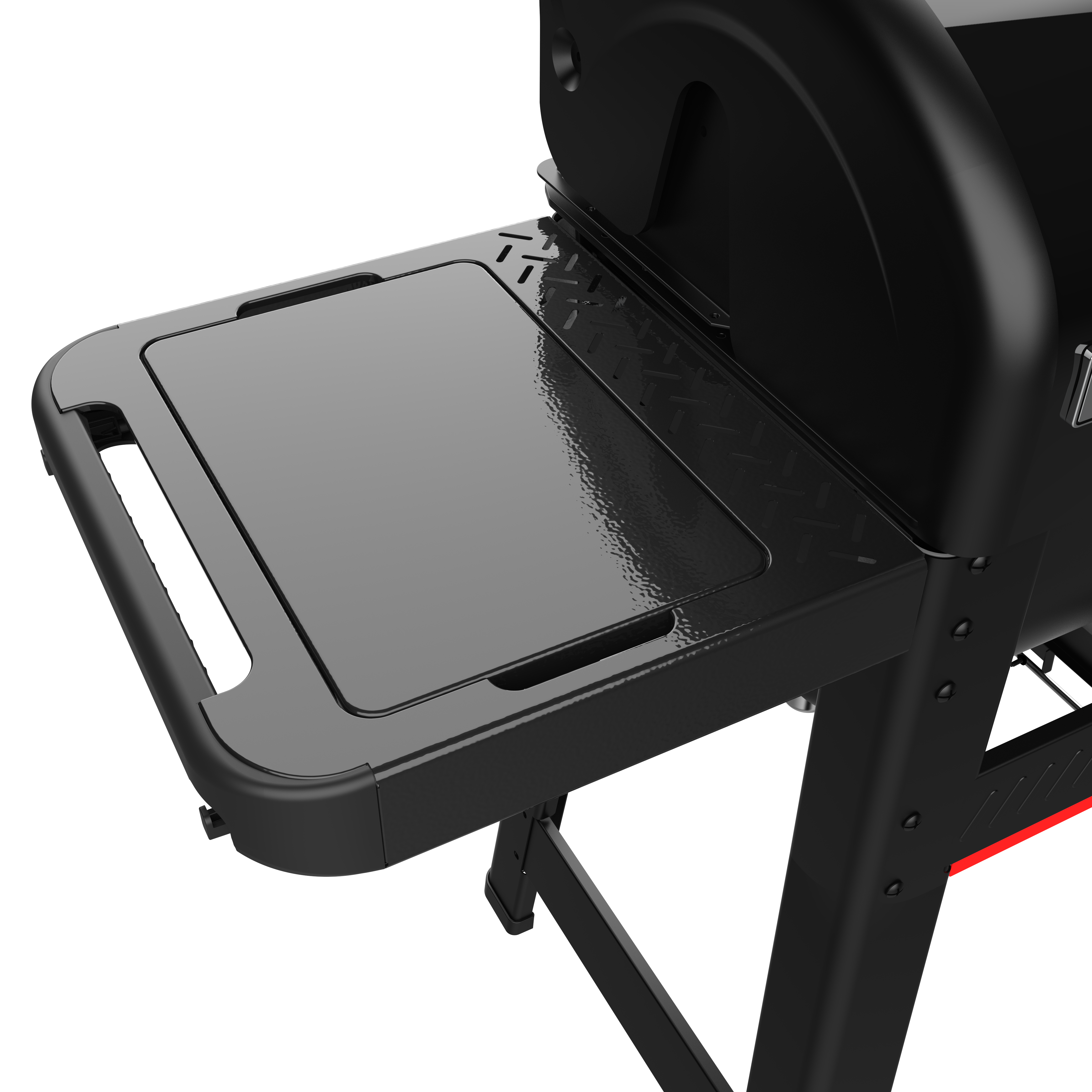 • Side table attaches to the barbecue or smoker to add convenient prep, cook, and serve space