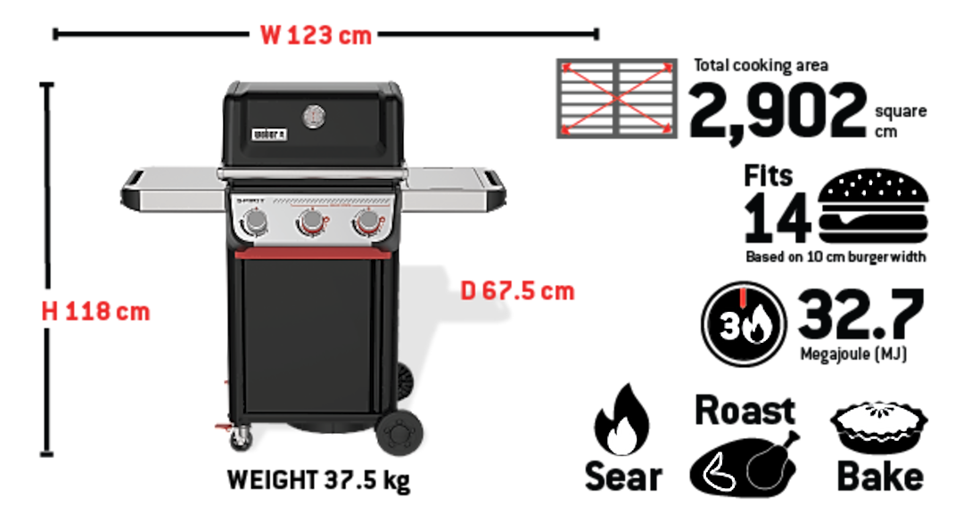Perfectly sized for Kiwi backyards, the Weber Spirit E-325 is a reinvented 3-burner barbecue that delivers the ideal mix of power, versatility, and compact design. Whether you’re feeding the family or grilling for mates, it’s big enough to cook for a crowd but streamlined enough to fit smaller outdoor spaces. The ultra-hot Sear Zone, powered by two stainless steel Boost Burners, unleashes 40% more heat, letting you create bold sear marks and smoky flavour with ease.
