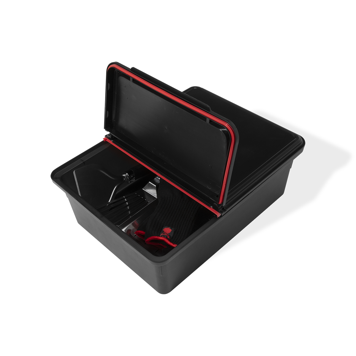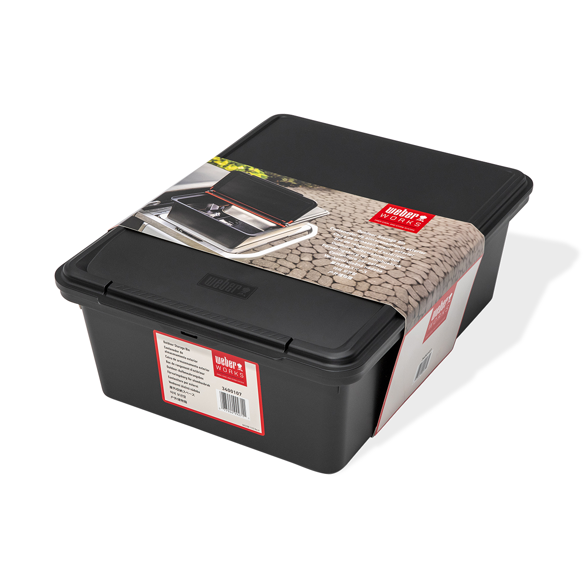 Keep your barbecue gear neatly stored and protected against the elements with the Weber Works™ Drop-in Outdoor Storage Bin. Designed with a tightly sealing lid to store things outside between cook outs, it’s also great for keeping tools and essentials handy while barbecuing. Weber Works™ Drop-in Outdoor Storage Bin is part of the Weber Works™ Prep, Cook, and Store System that is available now on Slate™ 30" and 36" Griddles and Expandable Stand.